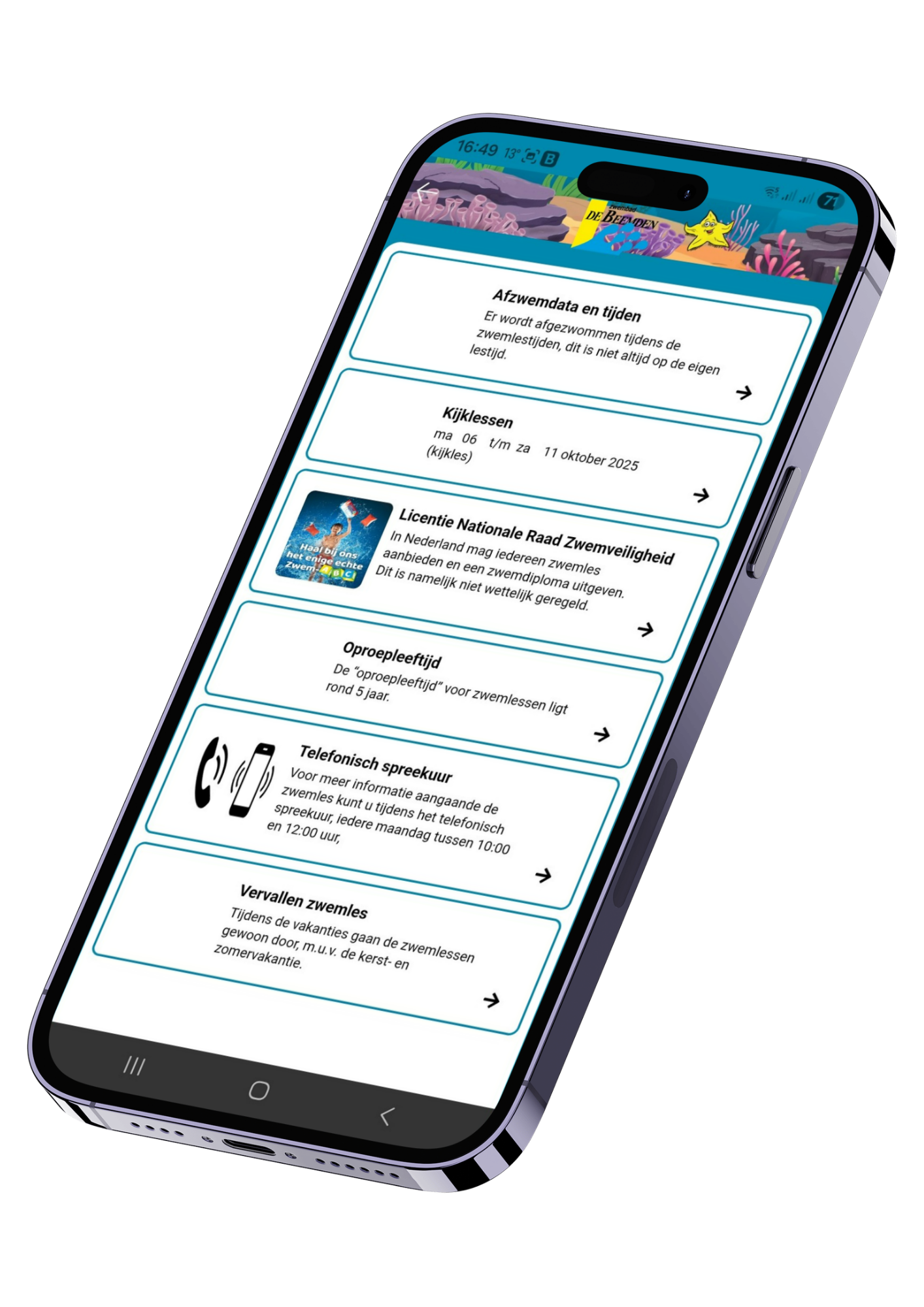 ⦿ Digitale zwempas (aanmelden met uw telefoon)